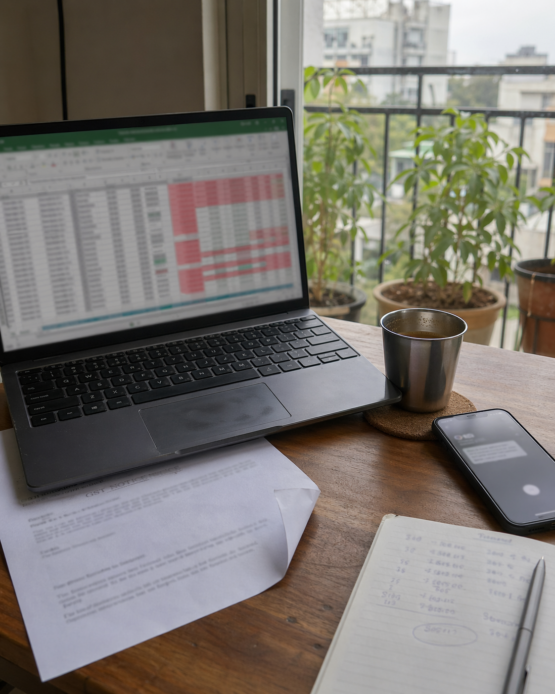 - ITC at risk — GSTR-2B vs claimed-ITC mismatch, approaching the Rs 1 lakh / 20% DRC-01C trigger. Supplier non-compliance list (filers missing GSTR-1).
